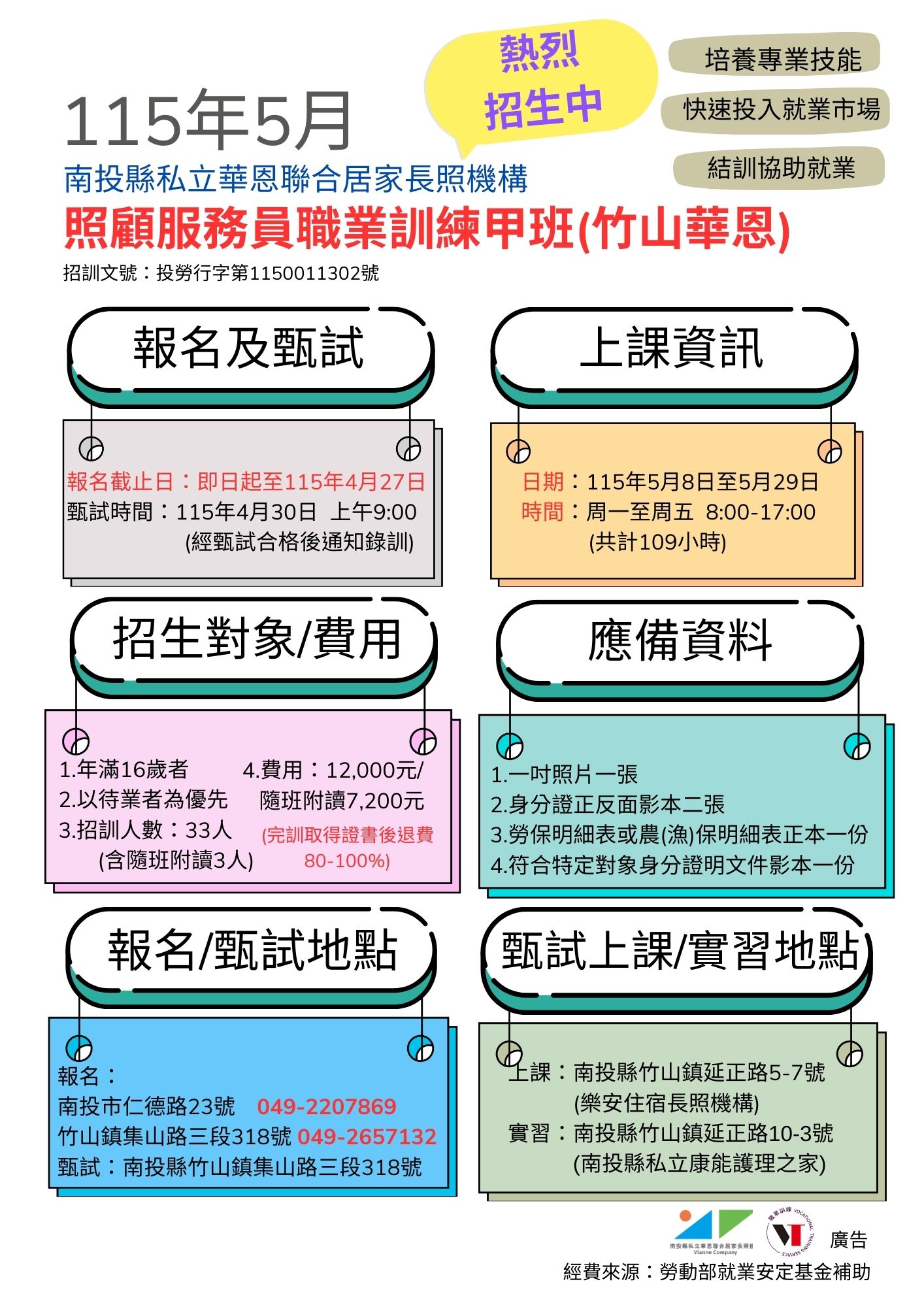 115年照顧服務員職業訓練甲班(竹山華恩)