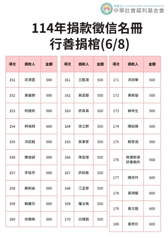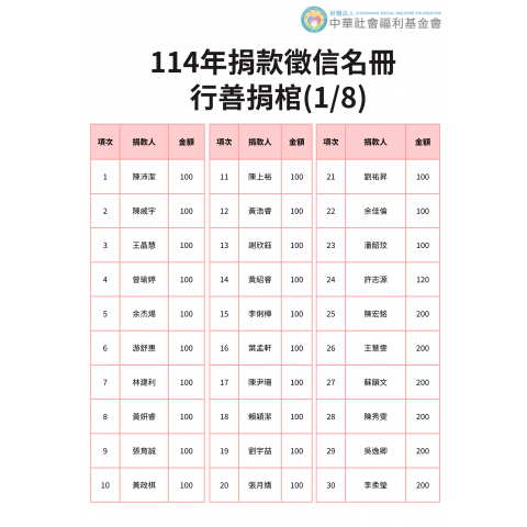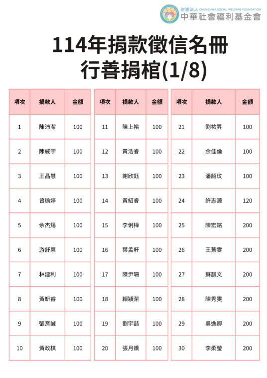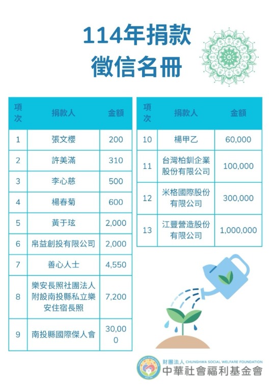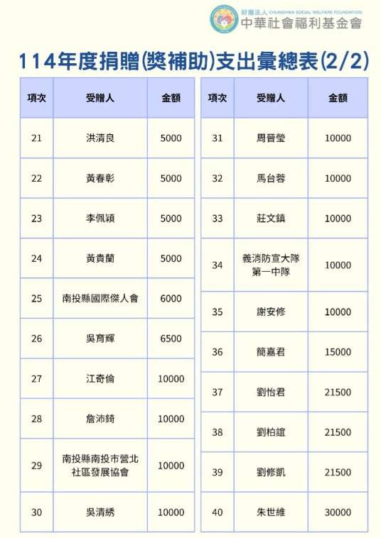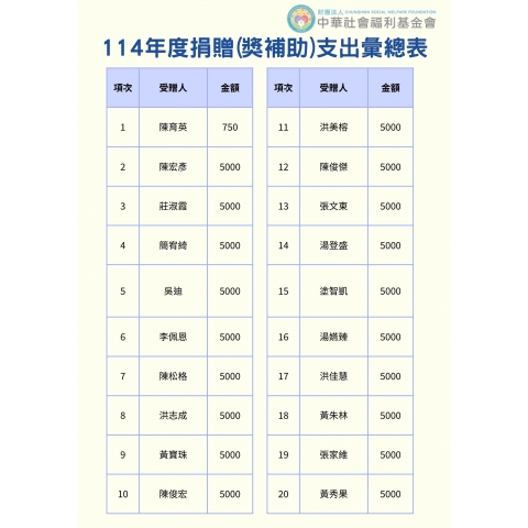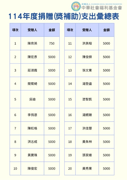 114年捐贈與受助者名冊(1-6月)