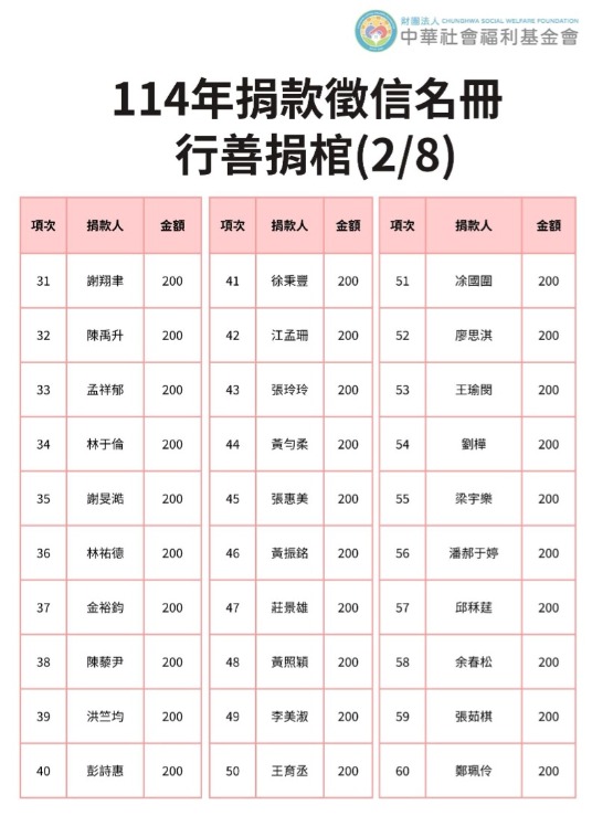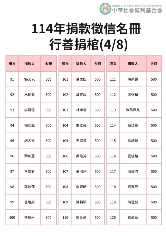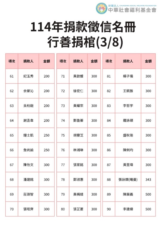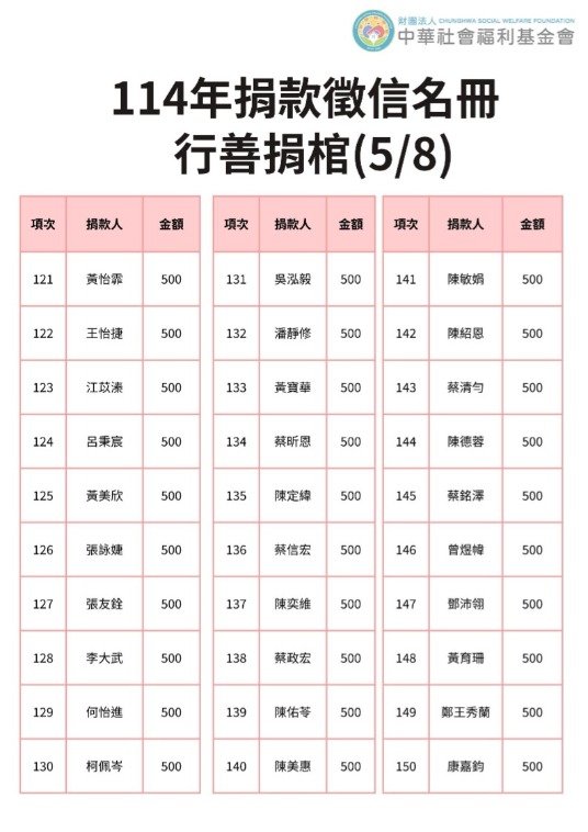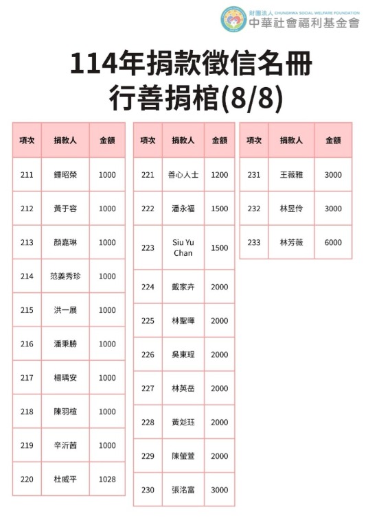 113年捐贈與受助者名冊