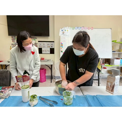 從事增進他們手眼協調、專注力和持久力的蝶谷巴特手作活動。